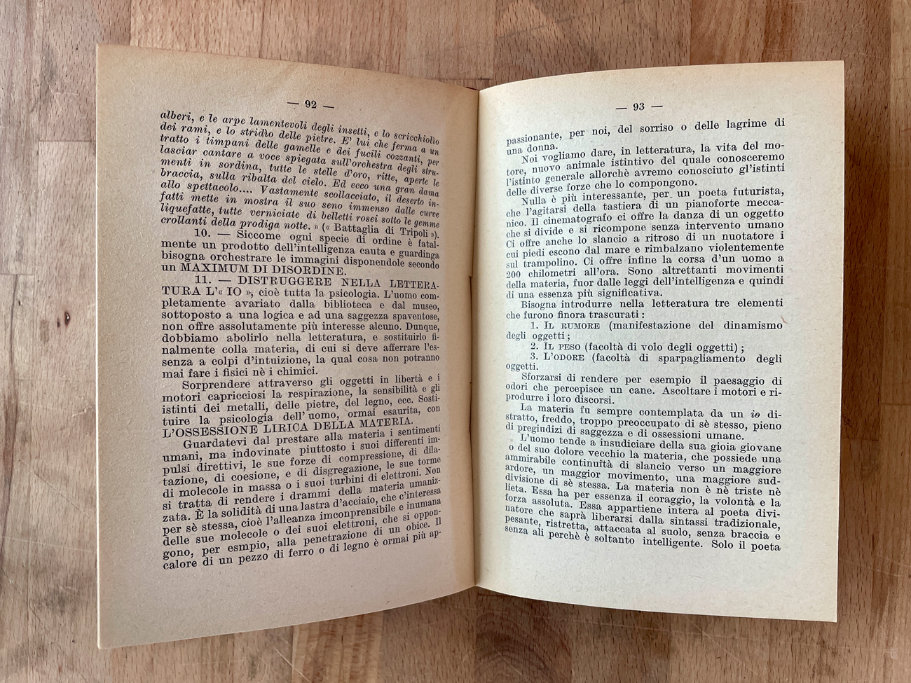 Catalogo riccamente illustrato (I manifesti del futurismo lanciati da Marinetti, Boccioni, Carrà, Russolo, Balla, Severini, Pretella, Mme de Saint-Point, Appolinaire, Palazzeschi)