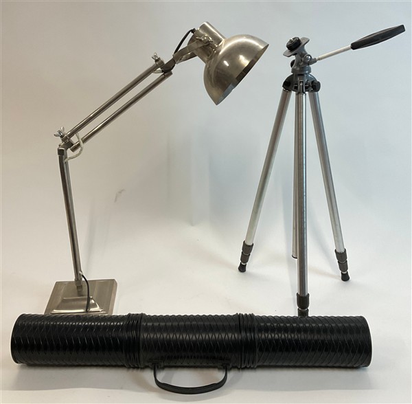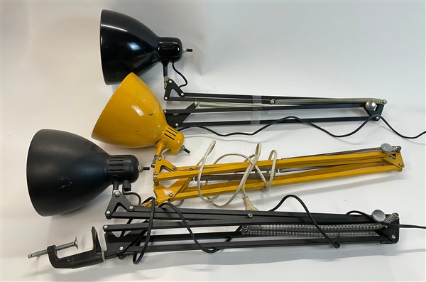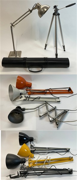 Lotto di cinque lampade a pantografo tra cui tre Naska Loris, una lampada da tavolo, una lampada da parete a pantografo e un cavalletto porta macchina fotografica. Italia, anni '80/'90. (difetti e mancanze)