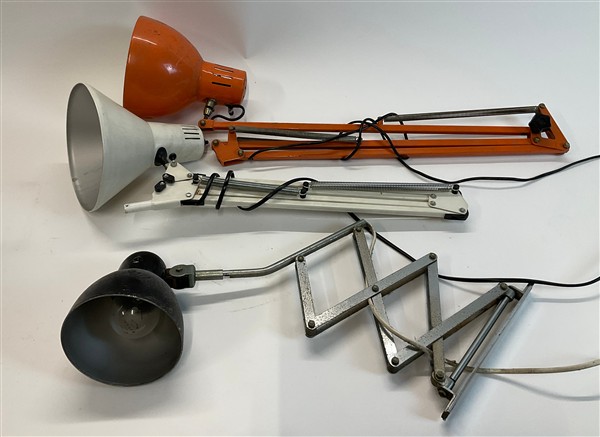 Lotto di cinque lampade a pantografo tra cui tre Naska Loris, una lampada da ta