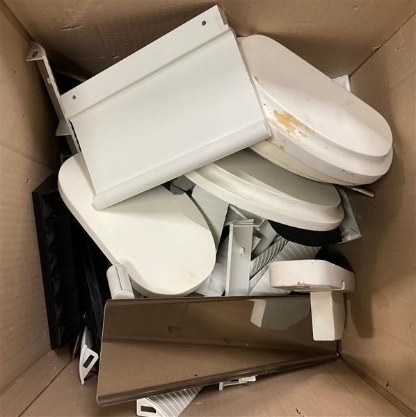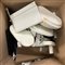 Lotto di diversi accessori da bagno in plastica, legno e metallo. Italia, anni