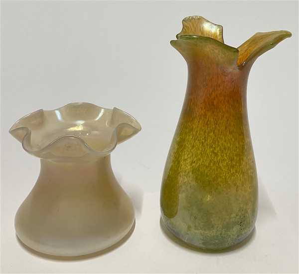 Manifattura centro-europea Lotto di due vasi, uno in vetro opalescente iridato e
