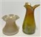 Lotto di due vasi, uno in vetro opalescente iridato e l'altro in vetro pesante a macchie e polveri giallo-arancio. Secolo XX. (h cm 23)