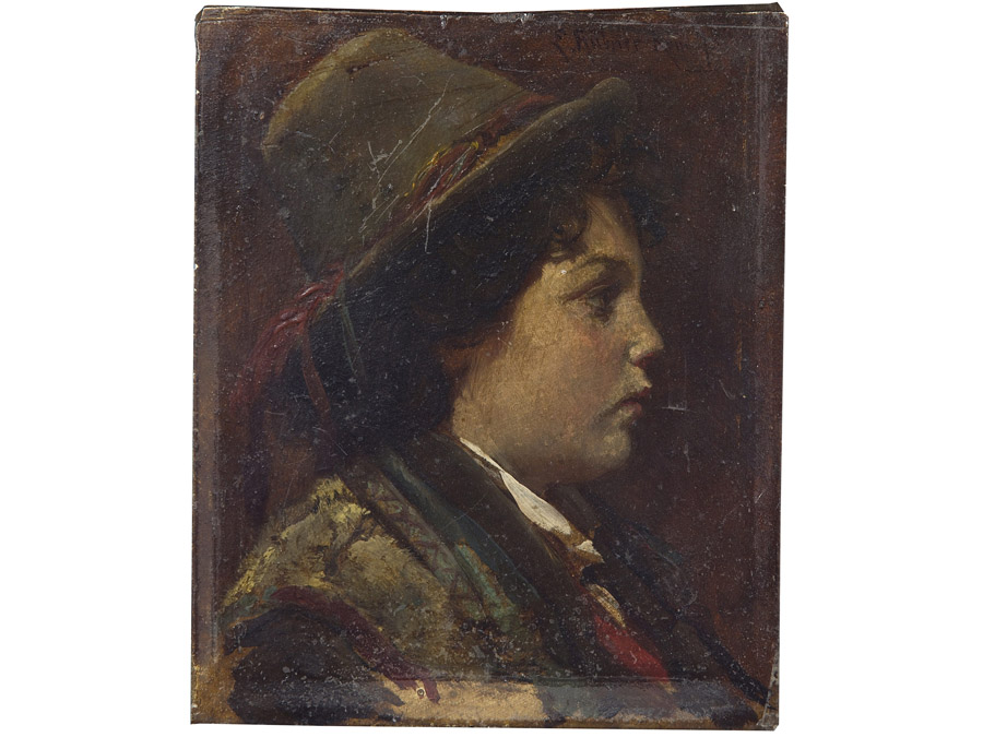 Anonimo (XIX secolo) Profilo di ragazzo olio su tavola 14x11,5 cm