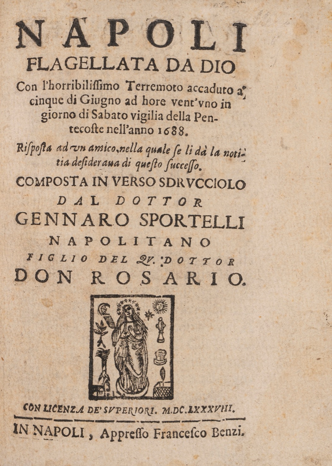 Lot 57 | Gennaro Sportelli - Napoli flagellata da Dio con l'horribilissimo terremoto, 1688