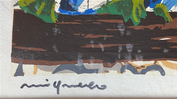 Giuseppe Migneco "Senza titolo" serigrafia a colori su tela cm 130x158 firmata