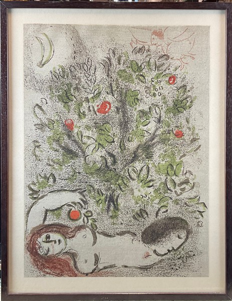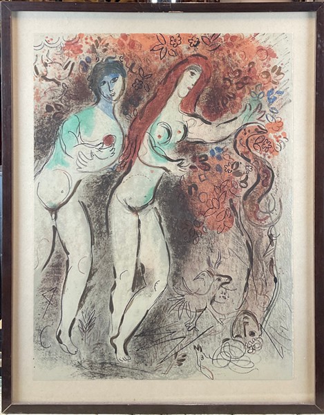 Marc Chagall "Dessins pour la Bible: Paradis Adam et Ève et le fruit défendu" 1