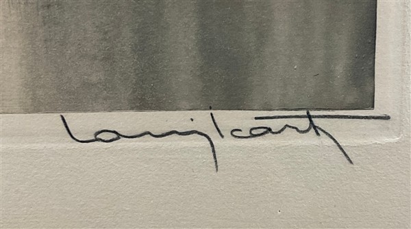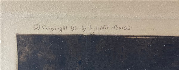 firmata in basso a destra a matita, timbro a secco dell'artista in basso a sinistra. In alto a sinistra, nella lastra "Copyright 1931 by Louise Icart, Paris". In cornice (lievi difetti)