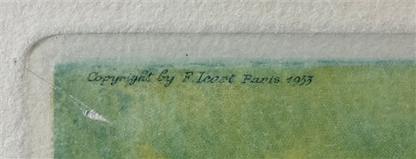 "Copyright 1953 by Louis Icart, Paris". In cornice (difetti)