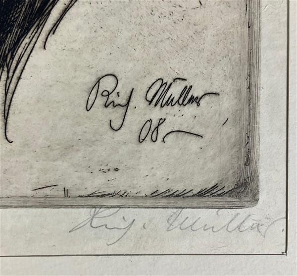 Richard Muller "Kopf Sieland" 1908 acquaforte (lastra cm 29,5x22,2; foglio cm 37