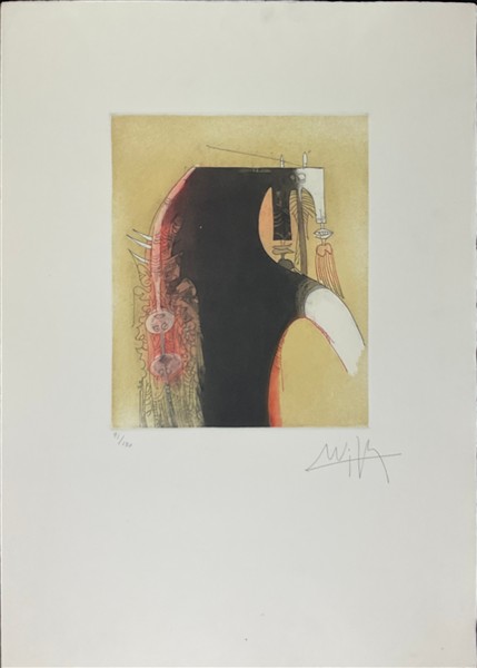 Wifredo Lam "Senza titolo" acquaforte e acquatinta a colori (lastra cm 29,5x24,