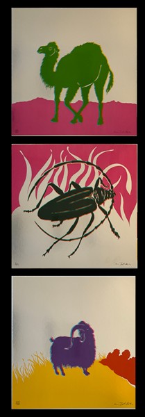 Gino Marotta "Muflone - Dromedario - Scarabeo" 1974 tre serigrafie su cartoncino