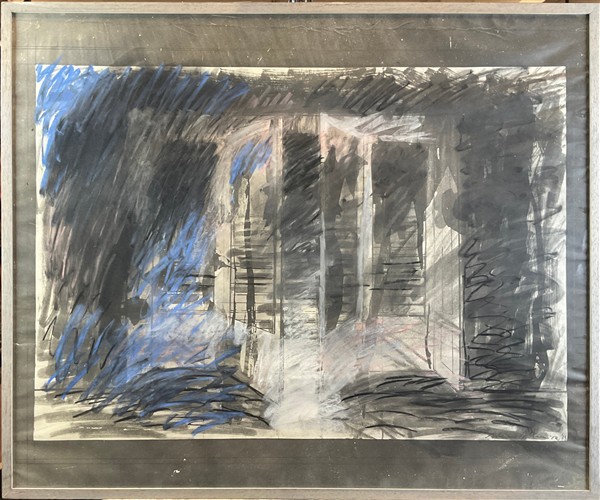 Adriano Altamira "Finestra" 1983 tecnica mista su carta cm 69x84 firmato e datat
