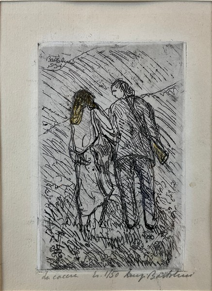Lot 2272 | Luigi Bartolini "La caccia" 1954 acquaforte acquerellata in alcuni punti Lastra
