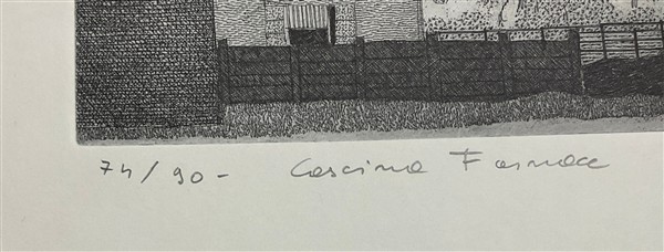 Federica Galli "Cascina Fornace" 1978 acquaforte (lastra cm 39,5x40; foglio cm 7