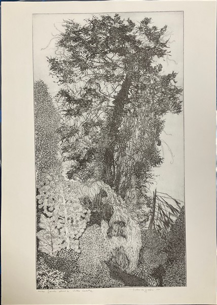 Federica Galli "Grande albero a Villa Carlotta" 1967 acquaforte (lastra cm 63,5x