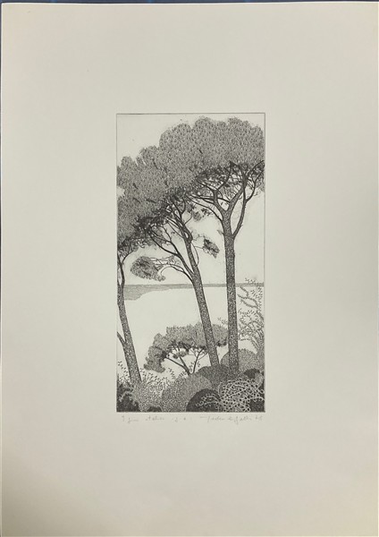 Federica Galli "I pini italici" 1978 acquaforte - prova d'artista (lastra cm 39x