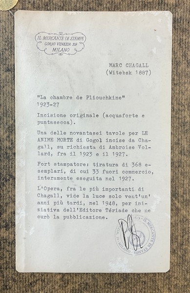 Marc Chagall "La chambre de Pliouchkine" 1948 acquaforte e puntasecca (lastra cm