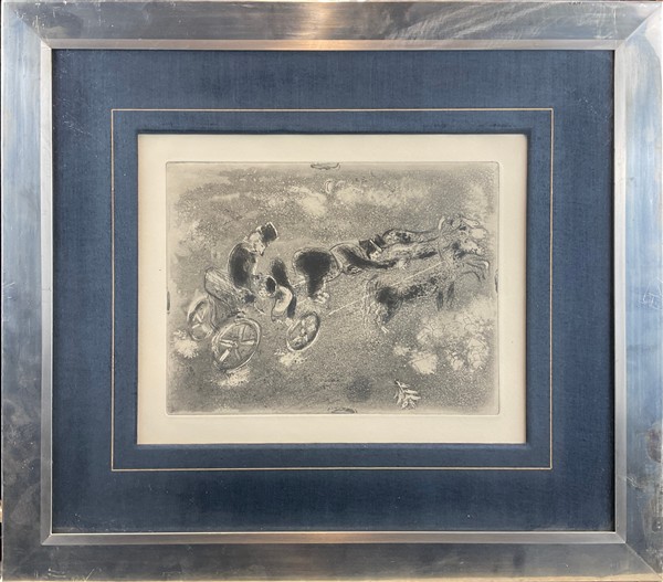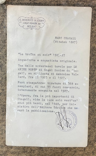 Marc Chagall "La troika au soir" 1948 acquaforte e acquatinta (lastra cm 21x27,7