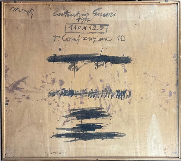 Costantino Guenzi "Composizione 10" 1977 olio su compensato cm 110x125 firmato e