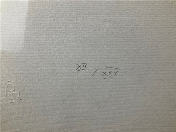 Timbro a secco "Galleria Linea 70, Verona" in basso a destra. In cornice
