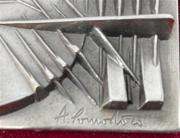 Arnaldo Pomodoro "Targa per Comune di Milano" 1978 bronzo argentato cm 8x11,5 fi