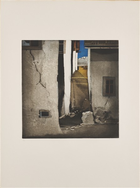 Karl Plattner "Paesaggio" 1982 acquaforte e acquatinta a colori (lastra cm 39x38