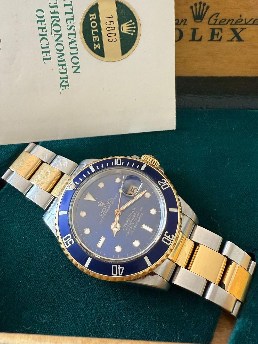 Marca Rolex Modello (Orologio) Submariner Date Numero di referenza 16803 Carica Automatico Materiale della cassa Oro/Acciaio Materiale cinturino Oro/acciaio Anno di produzione 1986 documenti originali Rolex, no box Carica Automatico Cassa Materiale della cassa Oro/Acciaio Diametro 40 mm Vetro Vetro zaffiro Quadrante Blu Cinturino Materiale cinturino Oro/acciaio Colore cinturino Oro/acciaio COMMISSIONE D'ASTA 25%