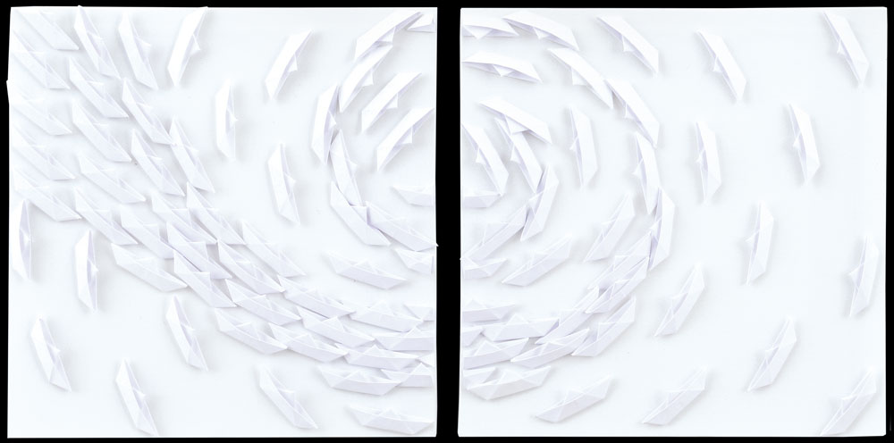 GUSMAROLI RICCARDO Milano 1963Vortice bianco (dittico), 2014barche di carta...