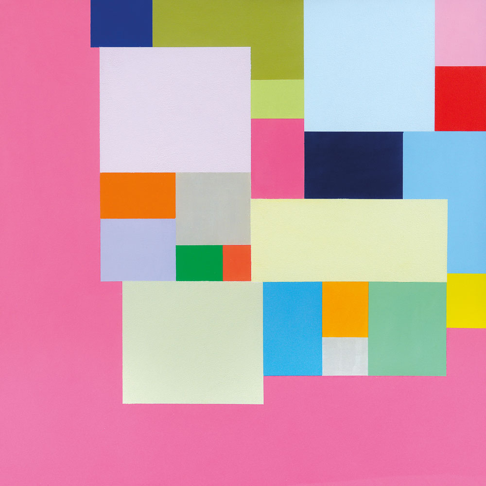 acrilici su tela cm. 95x95, titolo, firma e anno al retro, etichetta dell'artista nella tavola al retro, dichiarazione d'autenticità dell'artista su foto.