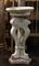 Fioriera da giardino con fusto tripode in calcestruzzo a volute e piedi ferini con vasca in pietra non pertinente decorata da baccellature e fascia dentellata (h tot cm 110, d cm 56). Secolo XX (difetti e mancanze)