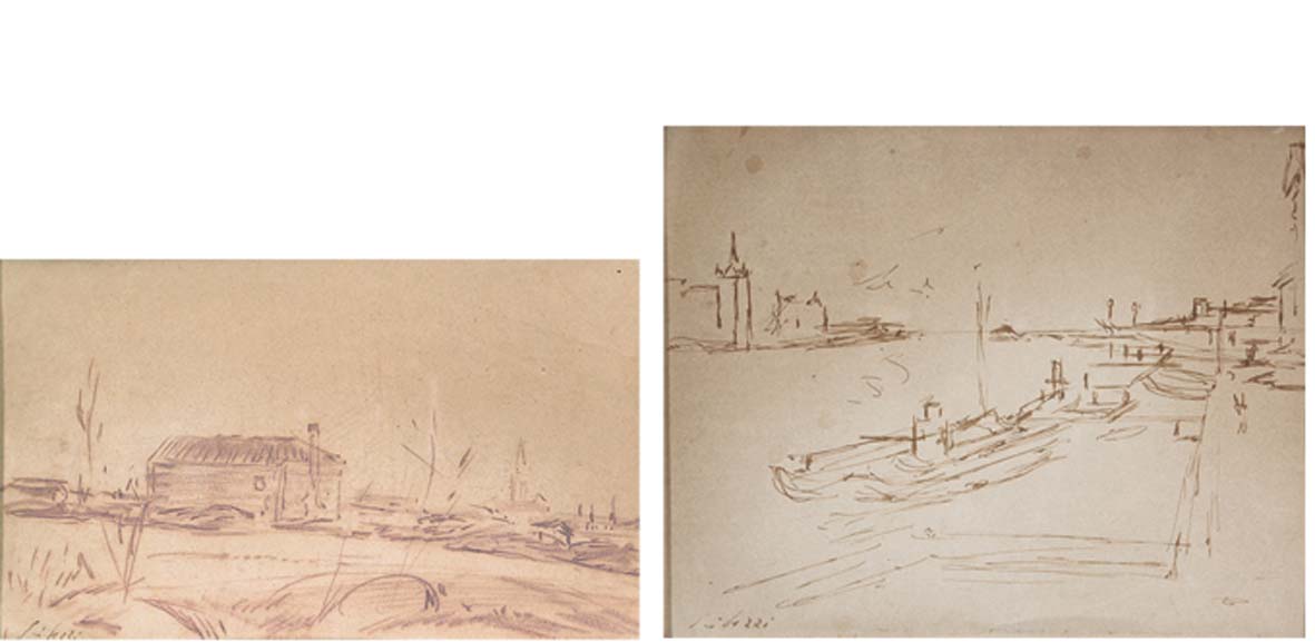 SEIBEZZI FIORAVANTE Venezia 1906 - 1975 Paesaggio lagunare - Venezia lotto di due tecniche miste su carta 16x27 - 22x27 cm entrambi firmati in basso a sinistra
