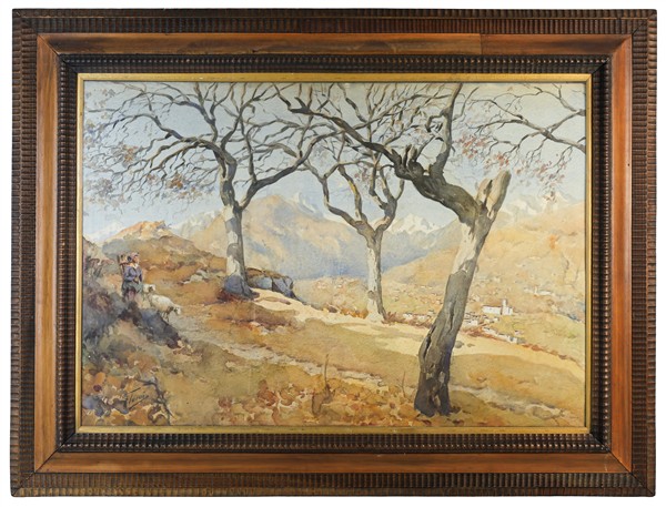 Fortunato Tami "Scorcio autunnale" acquerello su cartone (cm 60x100) firmato in