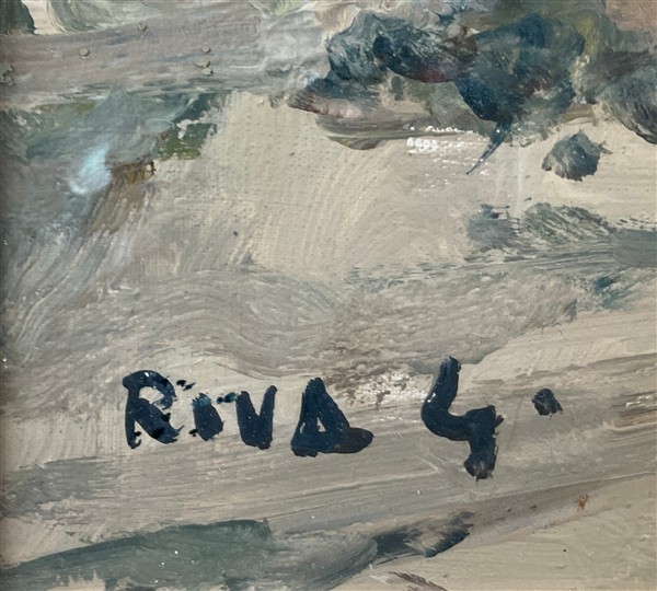 Lot 159 | Giovanni Riva "Le colonne di San Lorenzo" olio su tela (cm 50x70) firmato in ba