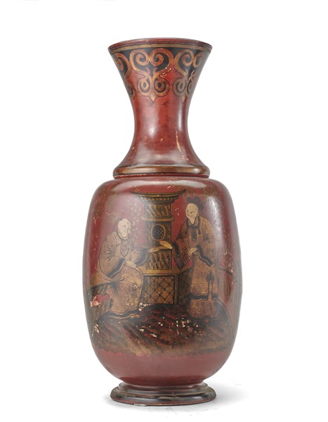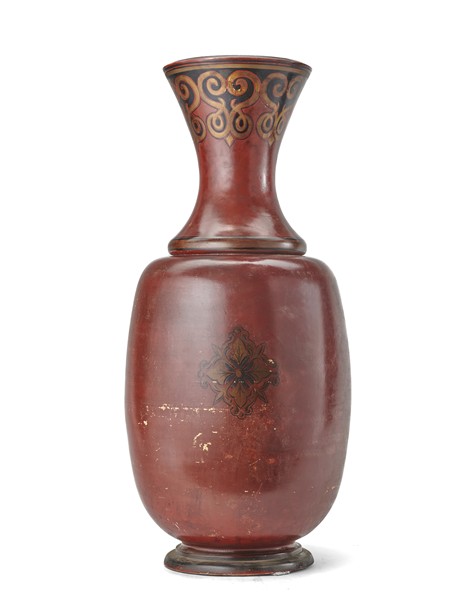 Lot 169 | Manifattura europea, secolo XIX. Vaso in terracotta laccata in rosso e decorata