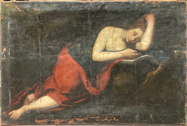 Scuola del secolo XVII "Maddalena penitente" olio su tela (cm 79x116) (gravi d