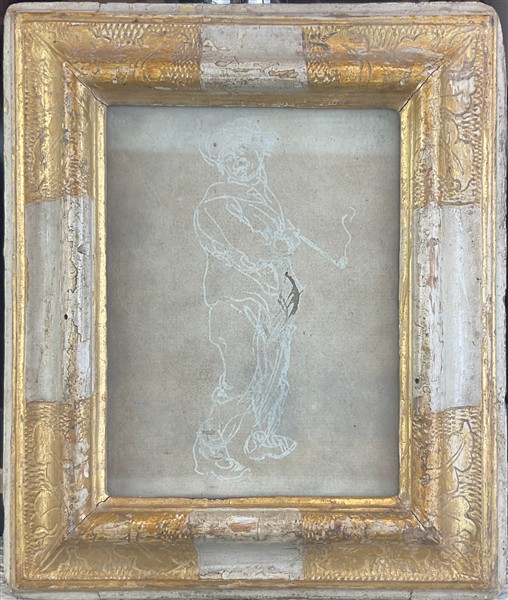 Lotto composto da un'antica incisione raffigurante "L'anatomista Andrea Vesalio (Bruxelles, 1514 – Zante, 1564)" (cornice cm 27x22,5) e un antico disegno raffigurante "Personaggio con pipa" (cornice cm 21,5x18)