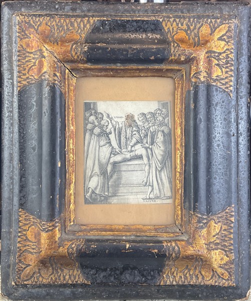 Lotto composto da un'antica incisione raffigurante "L'anatomista Andrea Vesalio