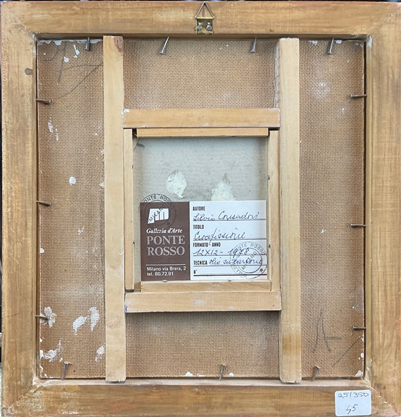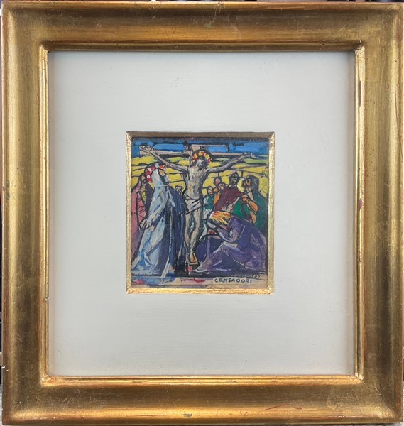 Silvio Consadori "Crocifissione" olio su cartone (cm 12x12) firmato in basso a