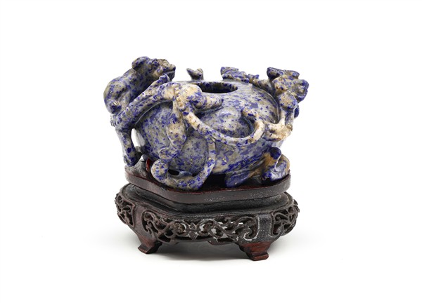 Vaso in lapislazzuli con draghi a rilievo e rami fogliati
