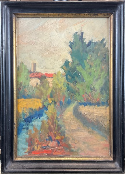 Lotto di sei dipinti ad olio su supporti differenti raffiguranti "Paesaggi", di diversi autori e misure (cm max 35x45)