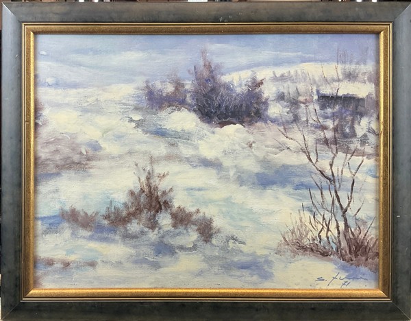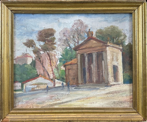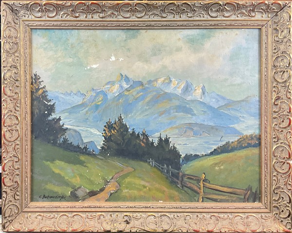 Lotto di sei dipinti ad olio su supporti differenti raffiguranti "Paesaggi", di