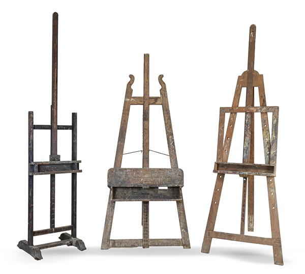 Lotto composto da tre diversi cavalletti da pittore di differente epoca e forma