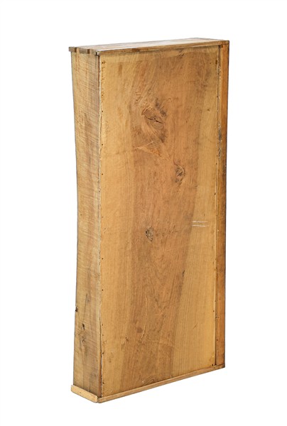 Cassettone lastronato in noce e radica, fronte a quattro cassetti con montanti