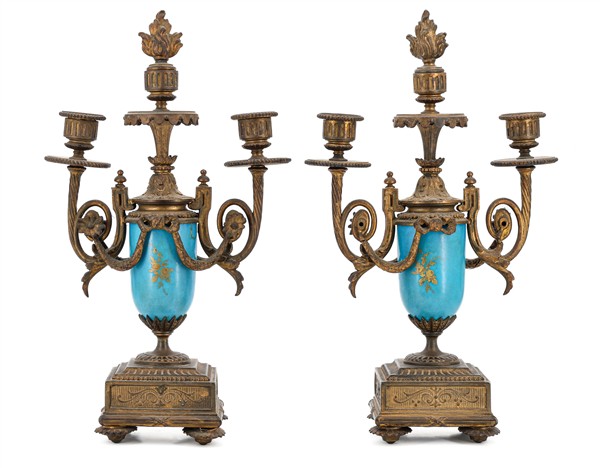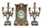 Trittico da camino composto da una coppia di candelabri a tre fiamme e una pend
