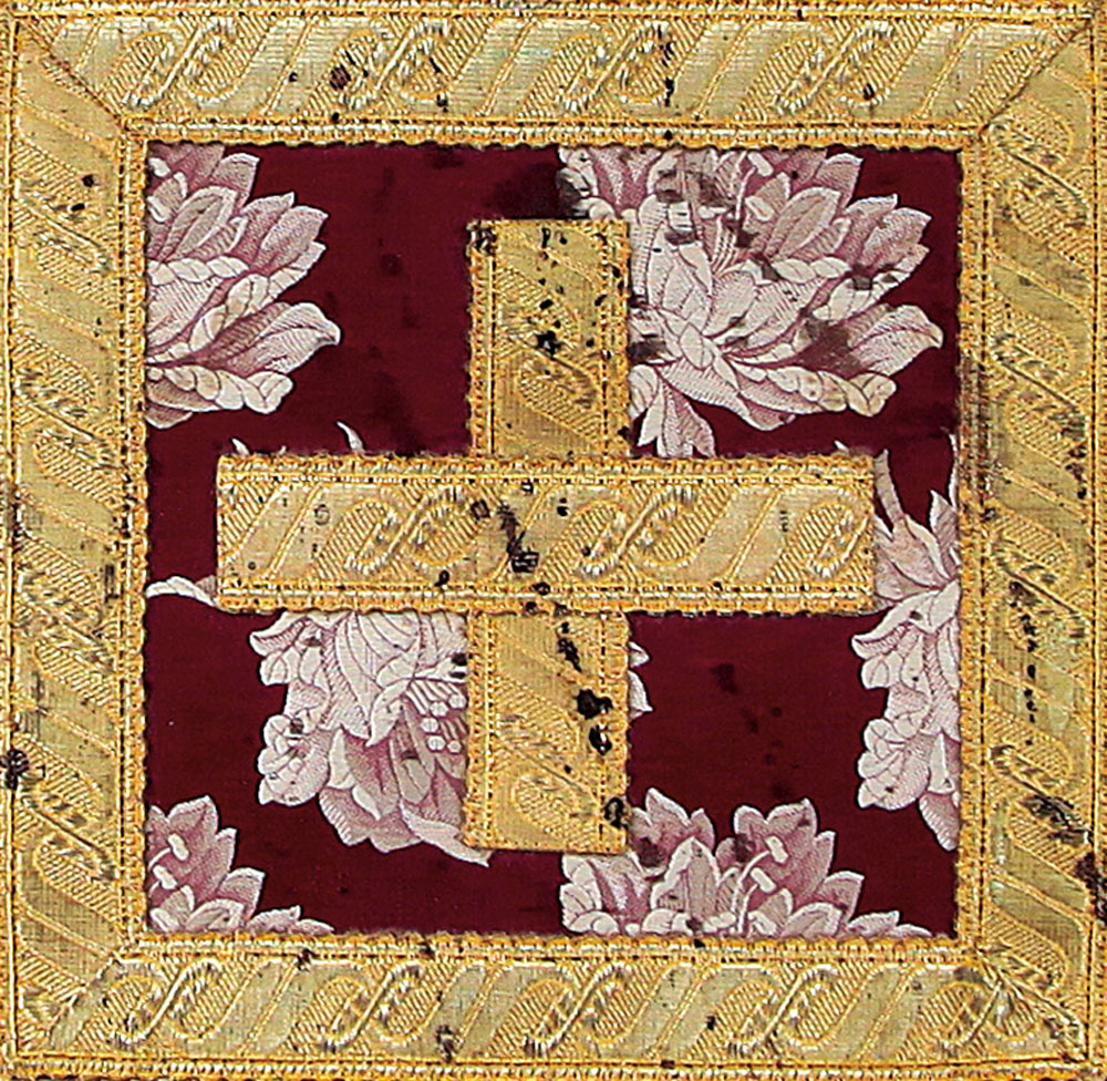 sangue su elemento di performance in tessuto cm. 24,5x24,5; firma al retro, timbro per autenticità e provenienza della Galleria d'Arte Castellani su foto.