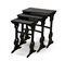 Tavolino a nido in legno laccato e decorato a motivi floreali e volatili in oro
