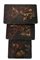 Tavolino a nido in legno laccato e decorato a motivi floreali e volatili in oro e rosso su fondo nero, composto da tre elementi con gambe sagomate (cm max 55x64x35) (difetti e mancanze)