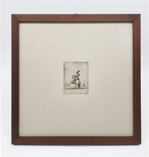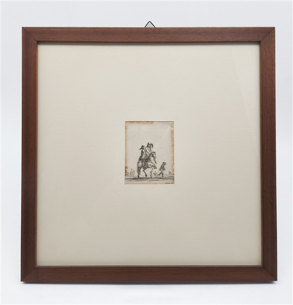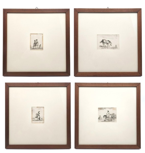 Stefano Della Bella Gruppo di quattro acqueforti raffiguranti "Cavalieri" (corni