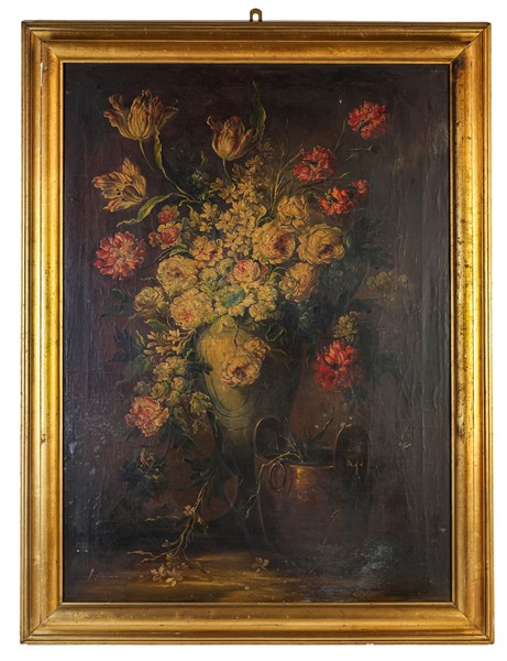 Ignoto del secolo XIX "Composizione con fiori" olio su tela (cm 107x78) in co