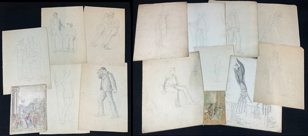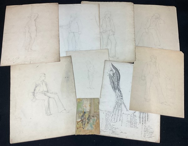 Lotto composto da numerosissimi disegni su carta, molti dei quali raffiguranti studi anatomici e studi architettonici (difetti)